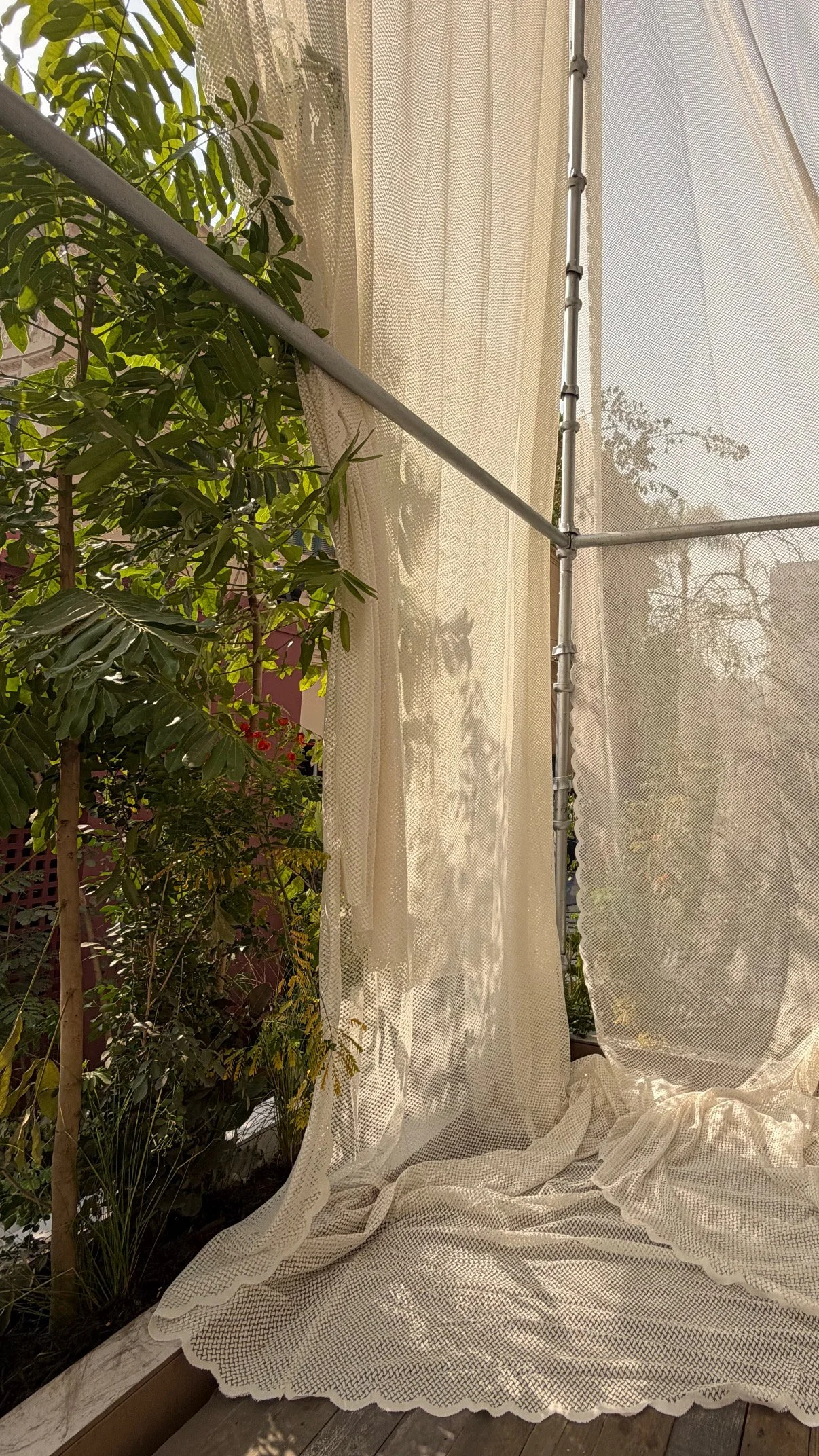 For Cairo Design Week 2025, ABn’G World presents a metal framework softened by a lace-like textile, creating a balance between structure and lightness. The stepped surfaces invite visitors to sit, read or pause, echoing the salon as a space for shared thought and quiet exchange. The dialogue between metal and fabric reflects Princess Samiha Kamel’s world, one that is attuned, resilient and intentionally composed. This installation offers an open space for gathering, contemplation and connection within the grounds of Samiha Kamel’s Palace.