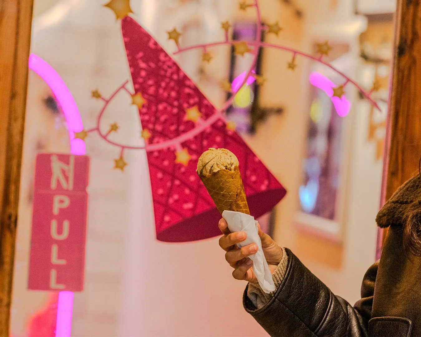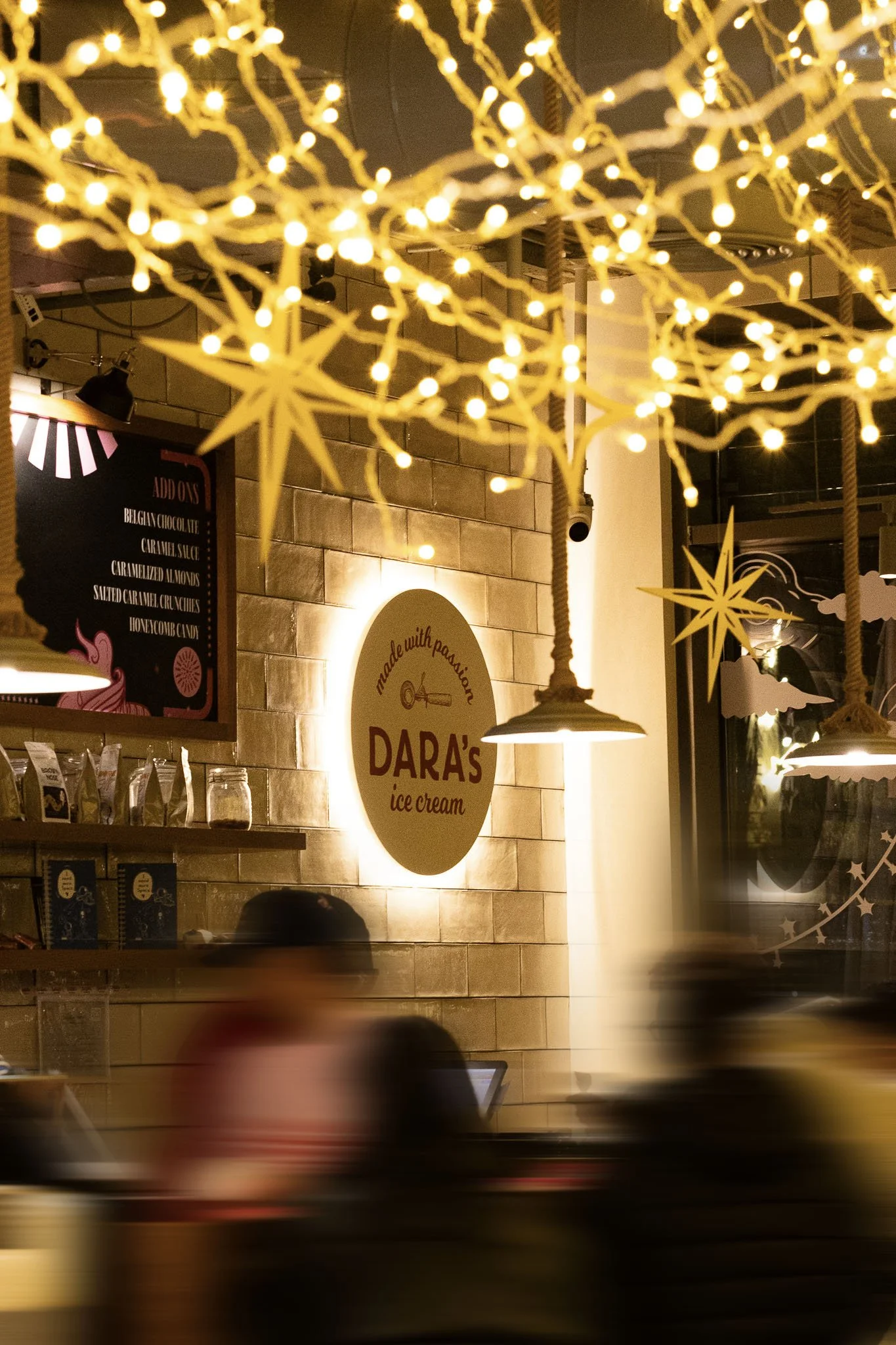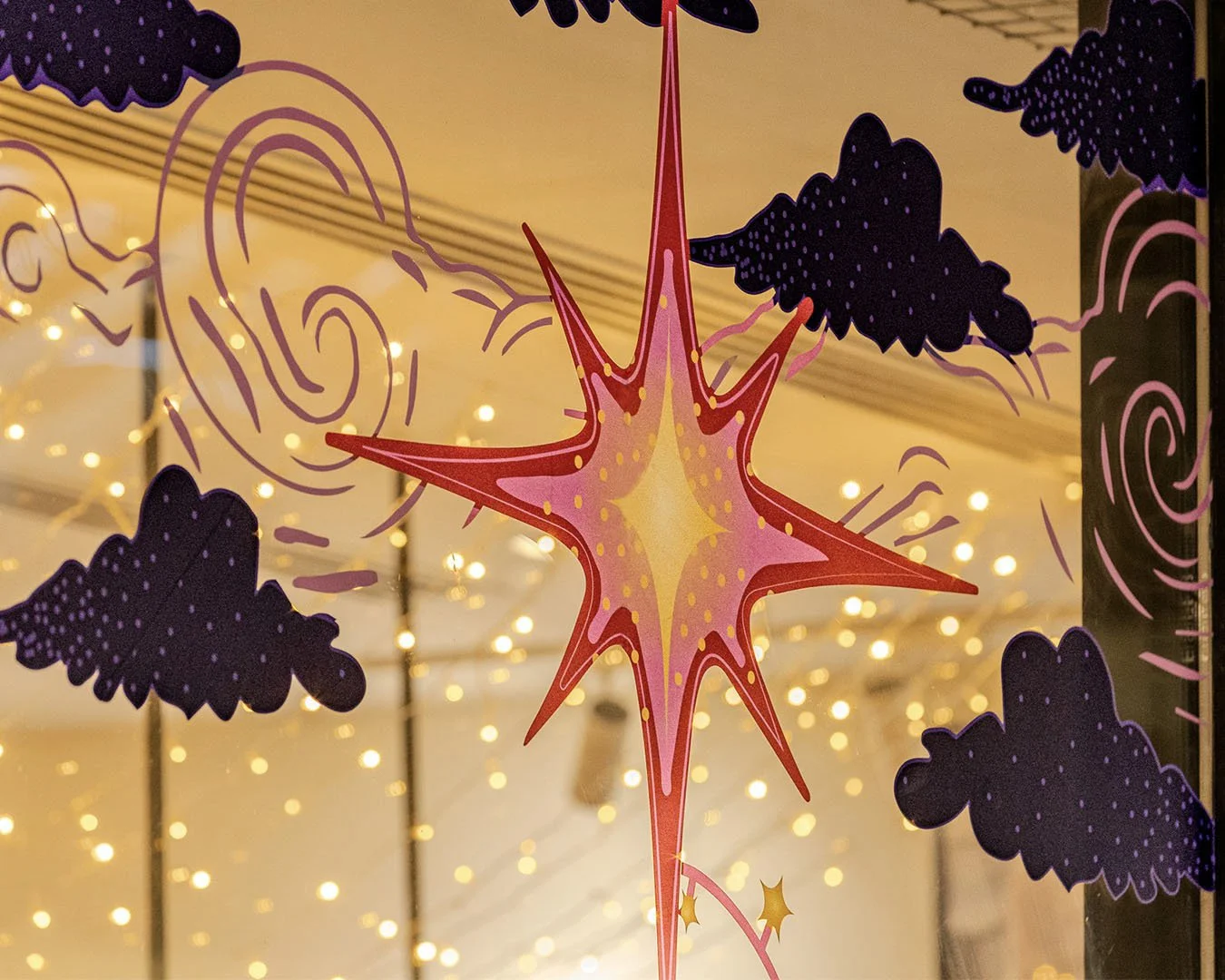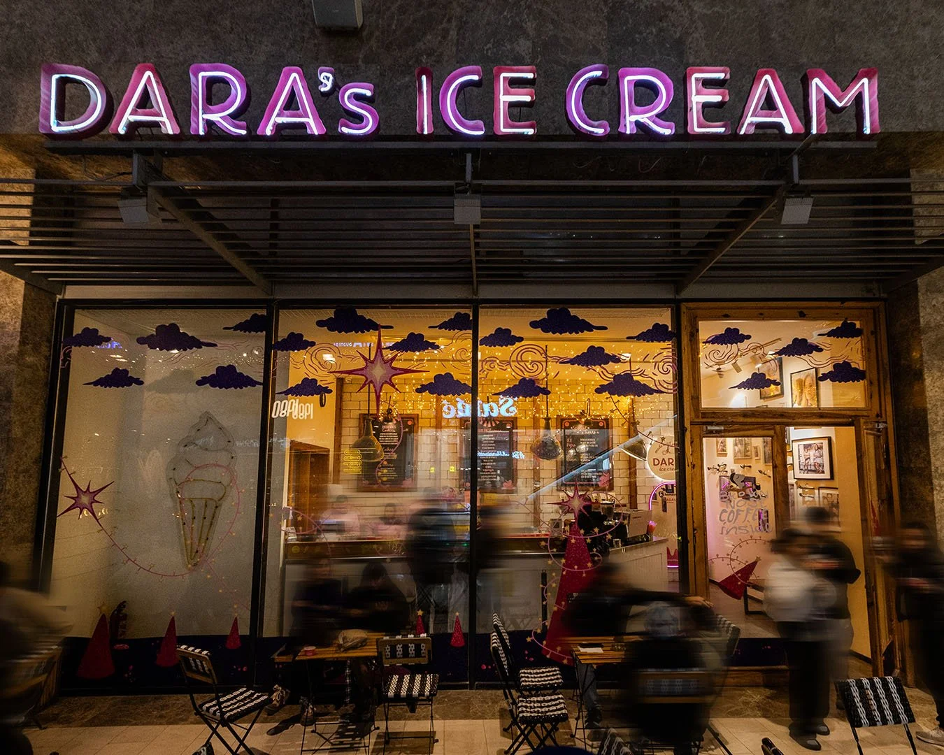 The Christmas window installations for Dara’s Ice Cream bring festive storytelling to the shopfront and interior alike. Custom window stickers add depth, interact with the space inside, and frame customers from the street, while star motifs cast subtle shadows as light shifts. Designed for scalability, the concept was implemented across over six branches throughout Cairo, delivering a consistent festive identity with room for variation.