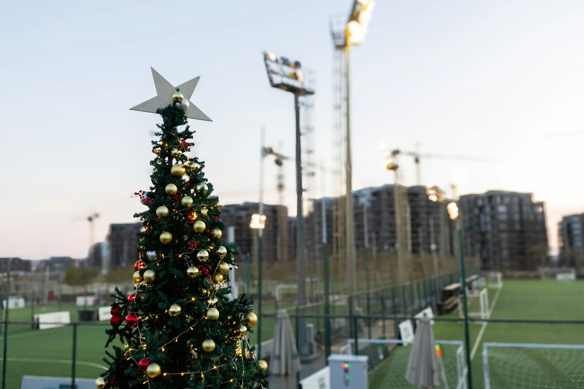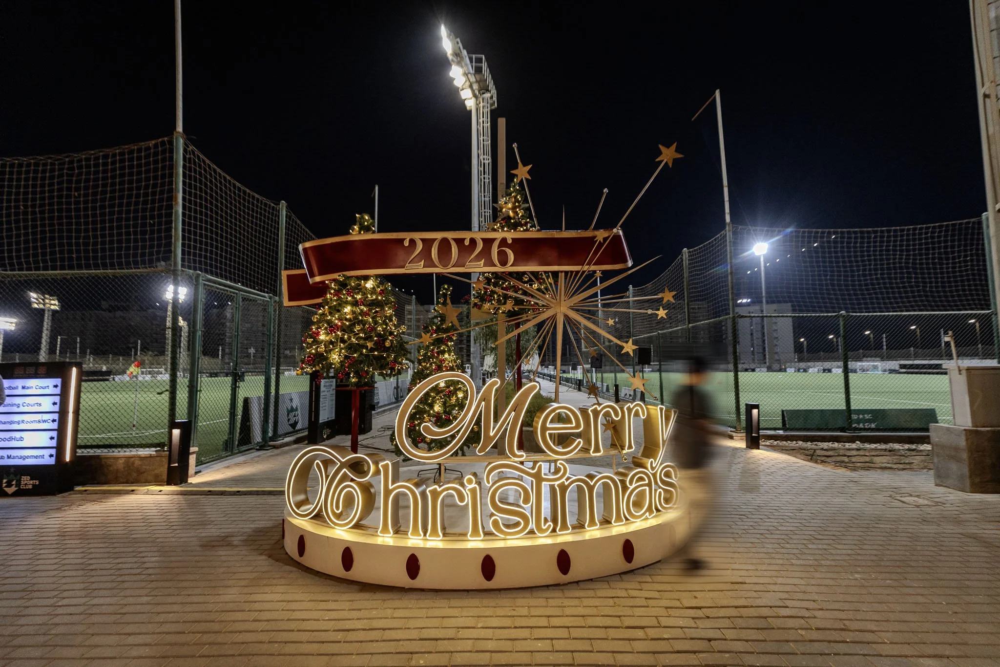 The Christmas installation at ZED East Club brings festive spirit into an active sports environment. A welcoming festive entrance and a central Christmas tree placed between the football fields transform the club into a seasonal arena, where celebration and movement meet. Designed in collaboration with ORA Developers, the installation adds a festive layer to the everyday rhythm of sport.